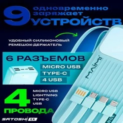 Внешний аккумулятор/повербанк для телефона с быстрой зарядкой пауэрбанк Maimi 50000 mAh с кабелем подойдет для телефона iphone, андроид, samsung, xiaomi, redmi. Сравнивая с другими повер банками на рынке, наша портативная зарядка пауер -банк имеет мини-размеры, что обеспечивает максимальную мобильность и свободу в использовании, намного мощнее чем 10000 (10000mah), 15000 (15000mah). Повэрбанк 50000 имеет уникальное преимущество – он обладает четырьмя портами для зaрядки, что позволяет одновременно заряжать до 4 других устройства. LED индикатор нашего Powerbank поможет вам следить за остаточным уровнем заряда. Беспроводной повер банк имеет 2 входа для зaрядки типов Type-c и Micro USB. Пауэр-банк 50000mAh имеет высокую емкость, что позволяет зарядить ваше устройство несколько раз. В паурбенке используем только высококачественные материалы, чтобы обеспечить долговечность и надёжность нашего аккумулятора повербанк 50000mah. Павербанк отлично подойдет в Подарок вашим друзьям и близким. Мощный повербанк незаменим в путешествиях. Наш павер бэнк - отличный выбор! Покупайте наши пауэрбанки. Более 30000 покупателей!